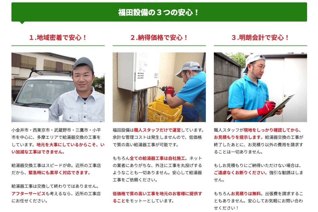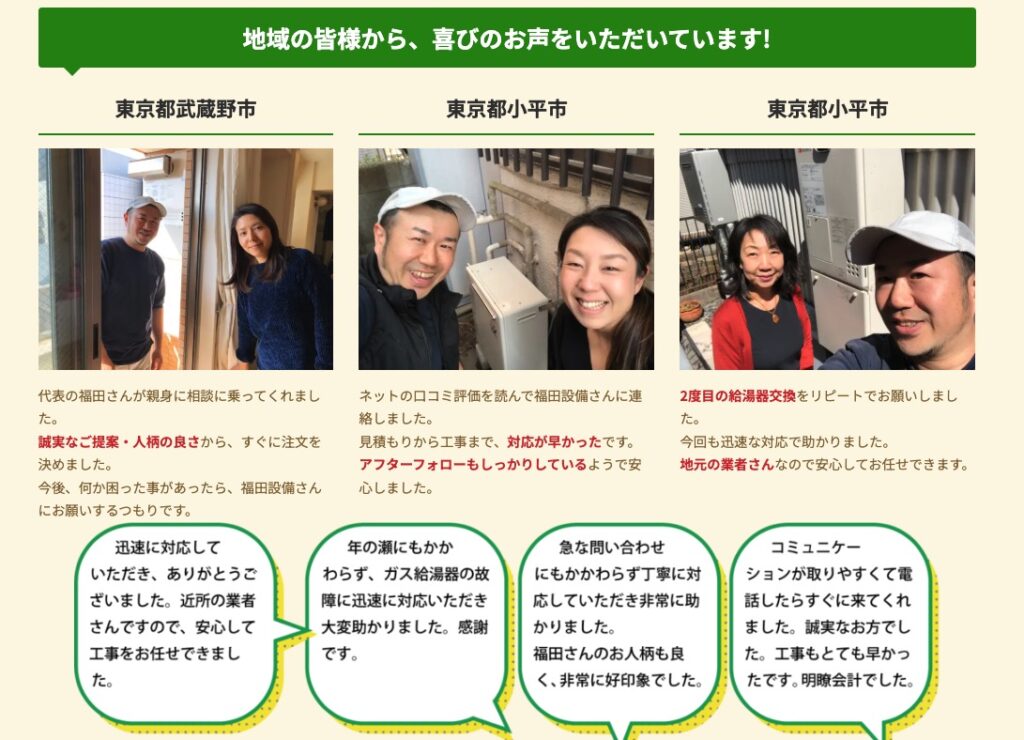 福田設備様は、小金井市・小平市・武蔵野市・三鷹市を中心に、長く地域で支持されてきた給湯器専門店です。